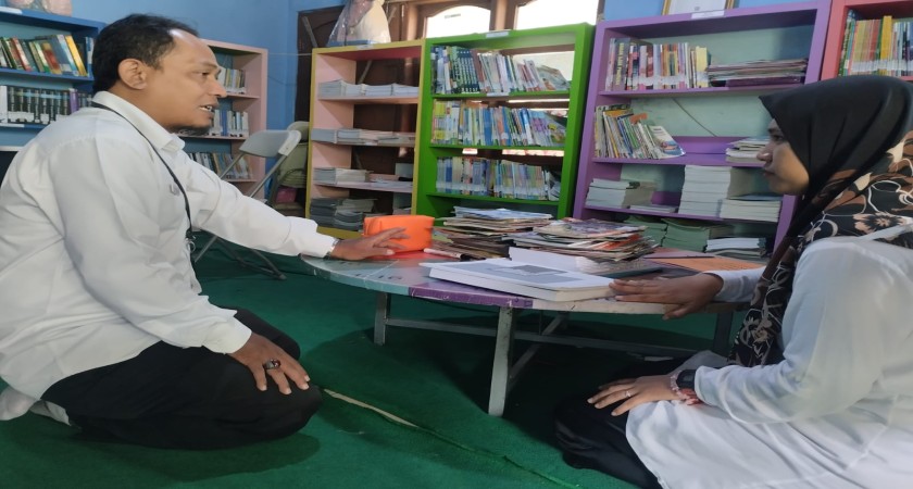 Kunjungan tersebut bertujuan memastikan sarana literasi di madrasah terpenuhi guna mendukung proses pembelajaran yang optimal. Dalam kesempatan itu, Muntaqo selaku pejabat pendamping menanyakan langsung kondisi koleksi buku di perpustakaan madrasah.